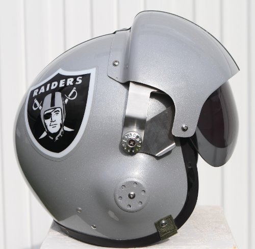 Oakland Raiders FIGHTER PILOT HELMET! Looking for the perfect gift? The standard medium/large size fits most average men and women with ease. IMAGINE THE PLAYER'S FACE WHEN YOU ASK HIM TO SIGN THIS! FOR THE FAN THAT HAS ALMOST EVERYTHING