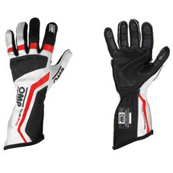 -Homologation FIA 8856-2000 -Professional Hi-Tech gloves from the F1 experience -OMP 3 grip technology: different fire retardant inserts on fingertips, fingers and palm with ultragrip treatment, for maximum grip on the steering wheel. -Precurved with external seams for maximum comfort. -Reinforced padded knuckles to improve strength. -Elastic band on the wrist for maximum grip.